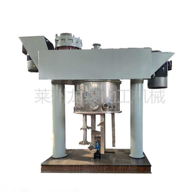 雙行星雙動力混合機上裝有低速攪拌部件和高速分散部件。低速攪拌部件采用行星齒輪傳動,攪拌槳在公轉時也自轉,使物料上下及四周運動,從而在較短的時間內達到理想的混合xiao果。高速分散部件與行星架一起公轉,同時高速自轉,使物料受到強烈的剪切與分散混合,其xiao果為普通混合機的幾bei。分散部件分單分散軸和雙分散軸,客戶可根據需要選用; 釜內低速攪拌槳與高速分散頭的轉速均采用變頻調速,可根據不用工藝不同粘度選擇不同的轉速。